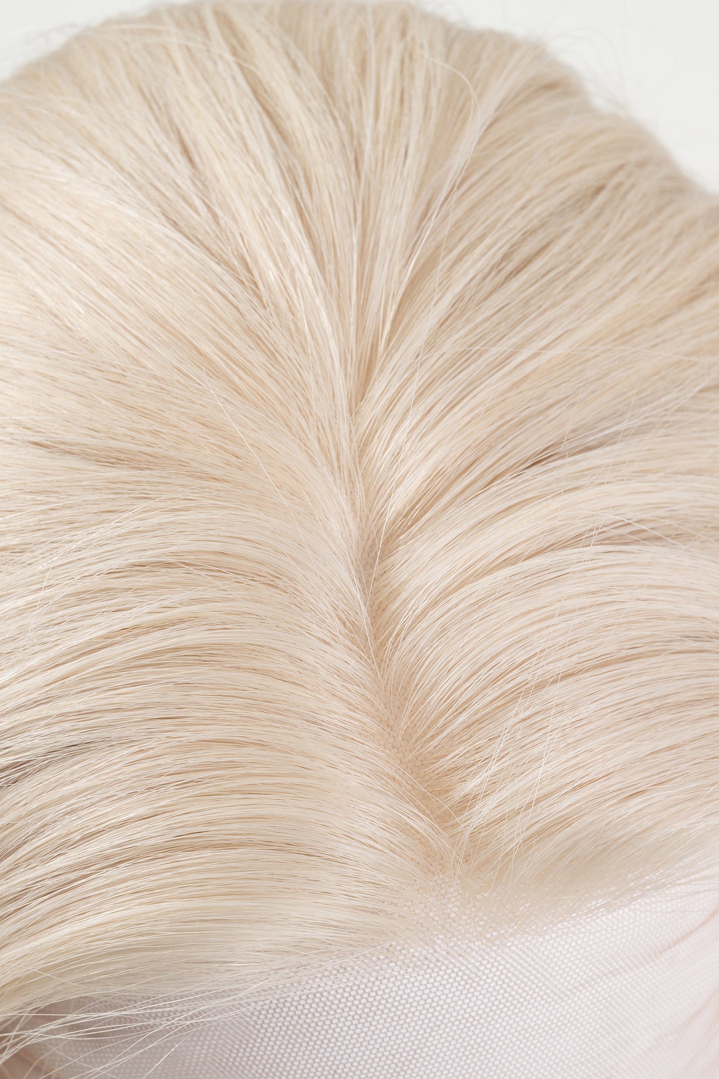 All of our wigs are 100% hand-tied: European human hair! The top is completely handtied strand by strand. (4”x4” Multidirectional skin top) This means your wig can be parted in any direction just like your own hair. It has a stretchy band with clasps to make sure the wig is fitted to your exact head size. Two clips are on each side so it can be clipped in for extra security on each side near your ears. If you have no hair at all you can wear our wig with a silicone wig gripper.