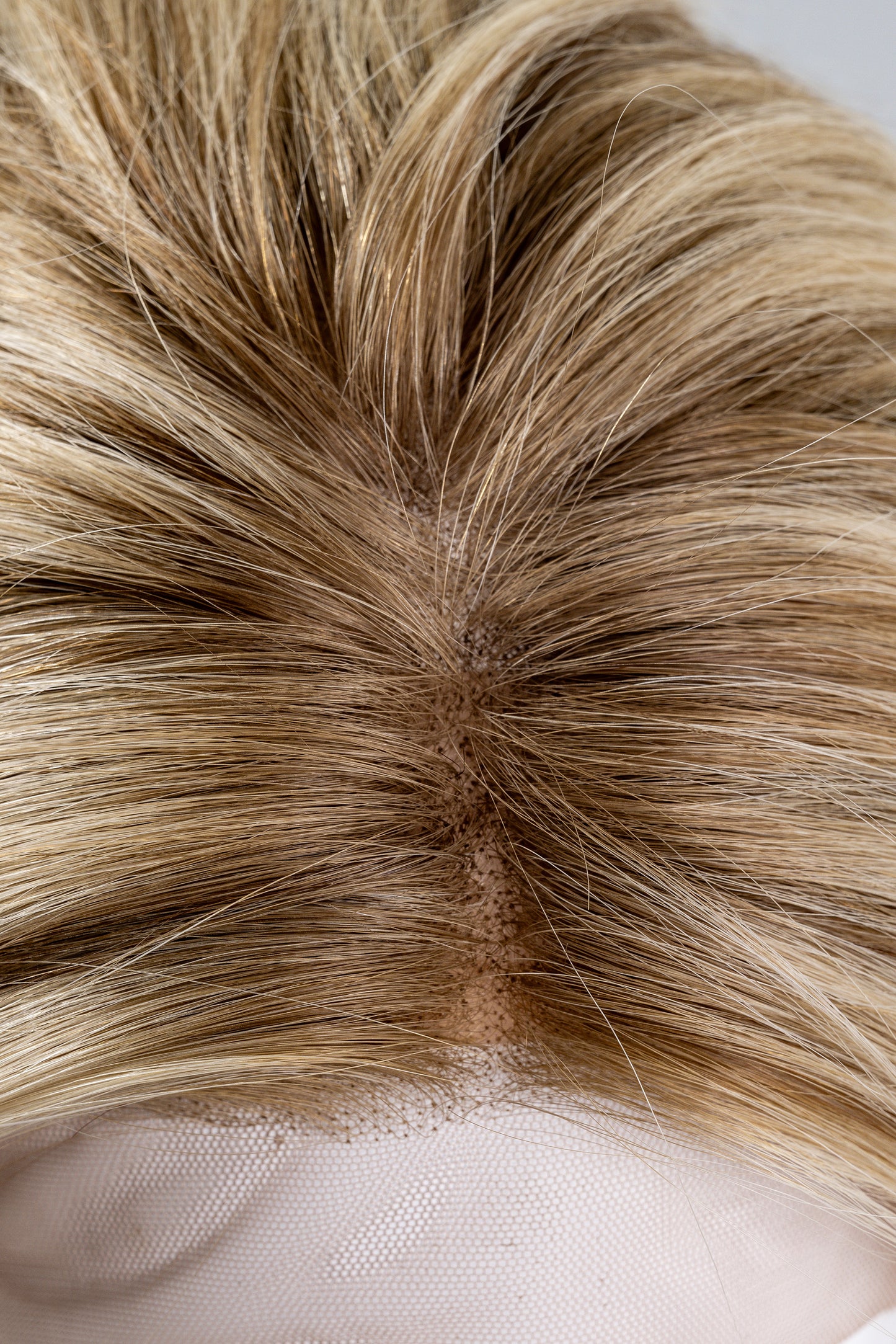 All of our wigs are 100% hand-tied: European human hair! The top is completely handtied strand by strand. (4”x4” Multidirectional skin top) This means your wig can be parted in any direction just like your own hair. It has a stretchy band with clasps to make sure the wig is fitted to your exact head size. Two clips are on each side so it can be clipped in for extra security on each side near your ears. If you have no hair at all you can wear our wig with a silicone wig gripper.