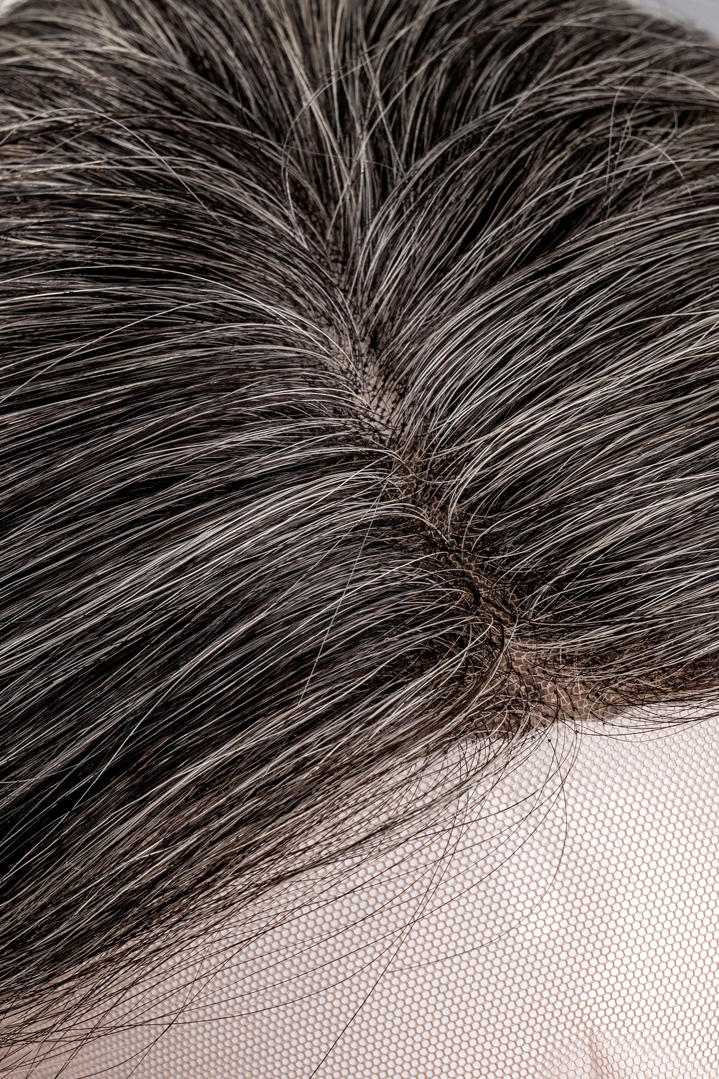 All of our wigs are 100% hand-tied: European human hair! The top is completely handtied strand by strand. (4”x4” Multidirectional skin top) This means your wig can be parted in any direction just like your own hair. It has a stretchy band with clasps to make sure the wig is fitted to your exact head size. Two clips are on each side so it can be clipped in for extra security on each side near your ears. If you have no hair at all you can wear our wig with a silicone wig gripper.