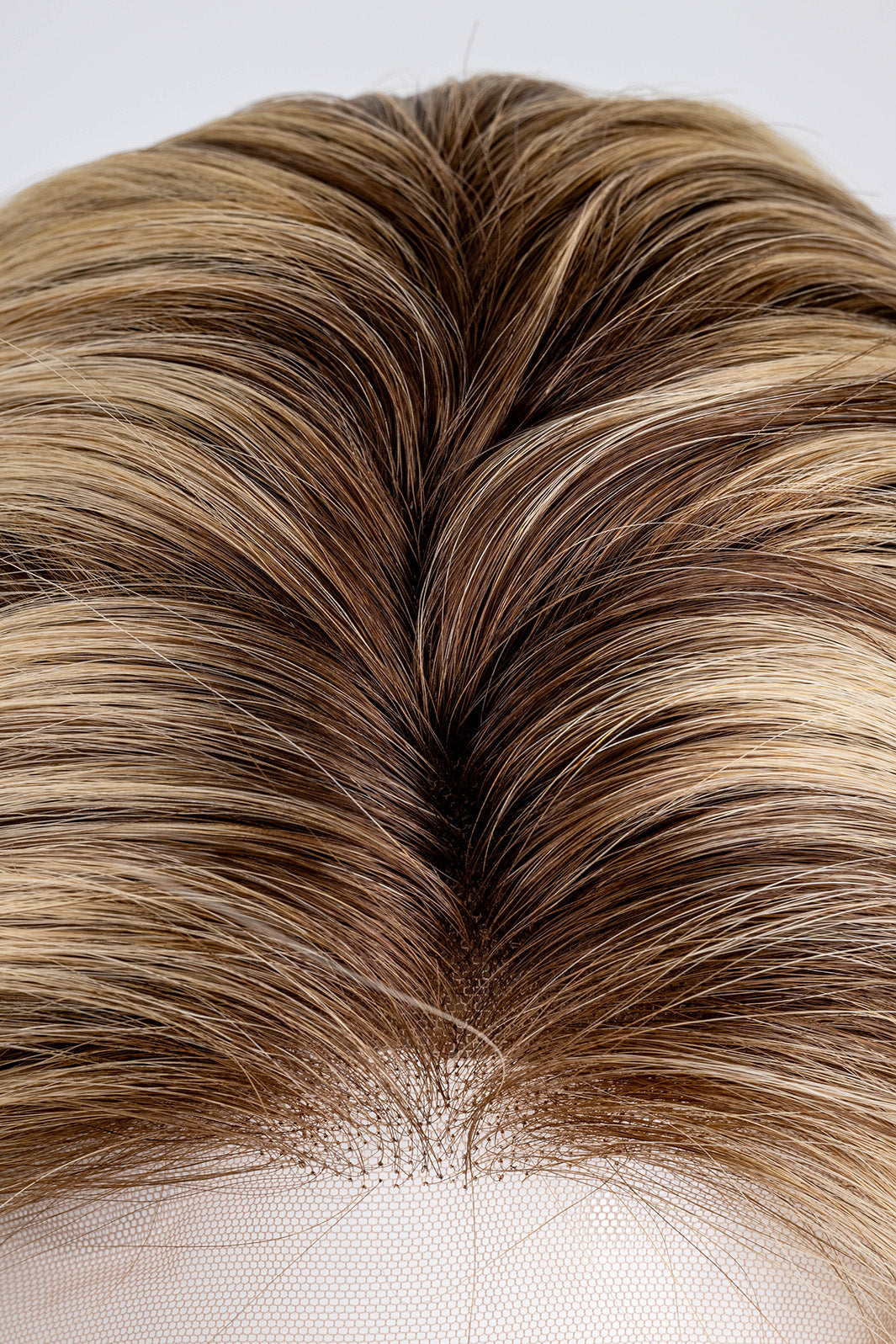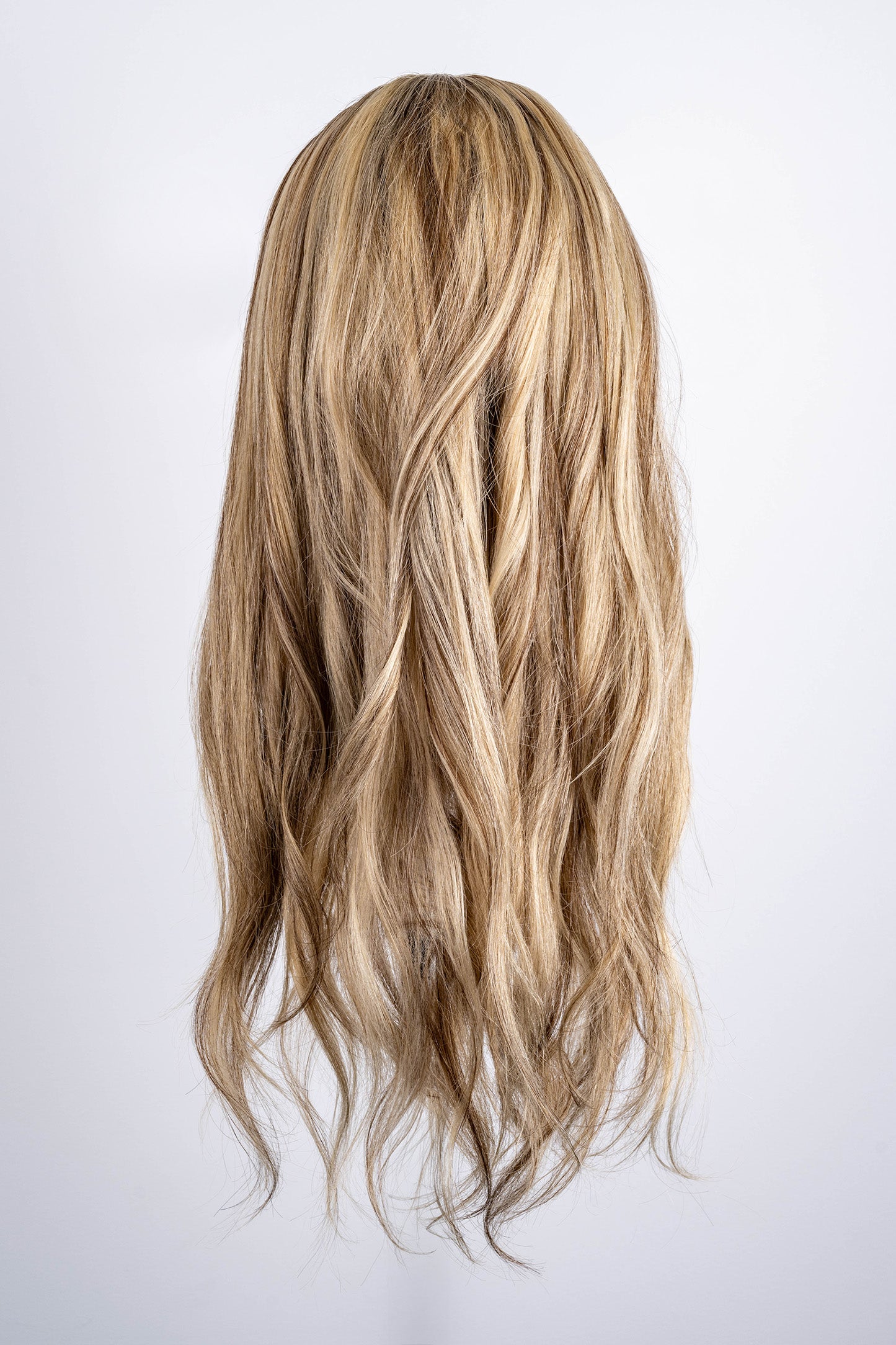 All of our wigs are 100% hand-tied: European human hair! The top is completely handtied strand by strand. (4”x4” Multidirectional skin top) This means your wig can be parted in any direction just like your own hair. It has a stretchy band with clasps to make sure the wig is fitted to your exact head size. Two clips are on each side so it can be clipped in for extra security on each side near your ears. If you have no hair at all you can wear our wig with a silicone wig gripper.
