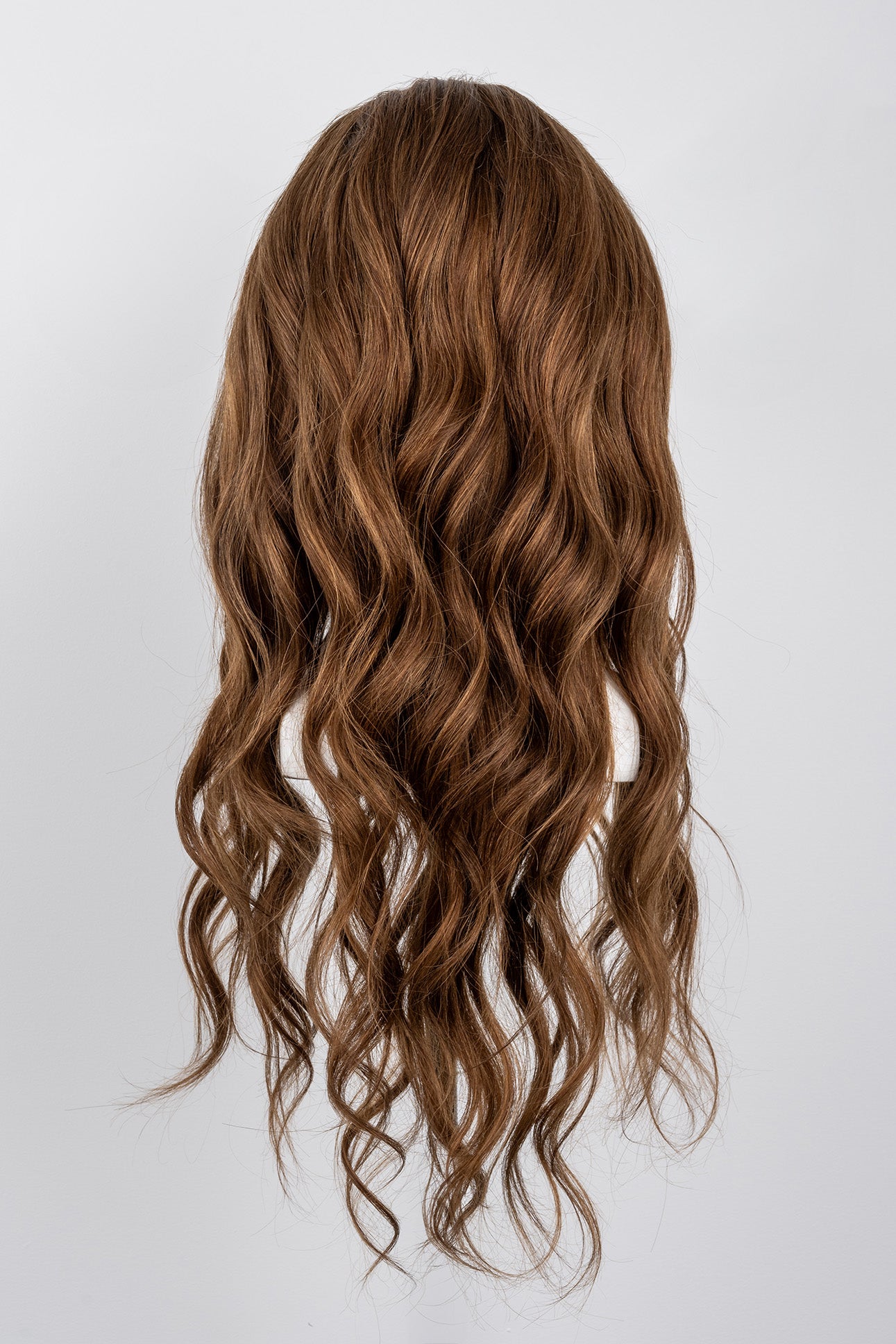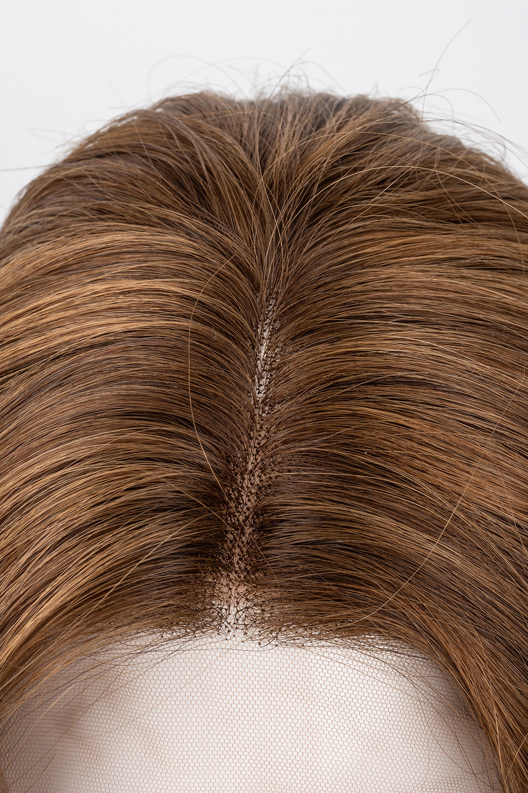 All of our wigs are 100% hand-tied: European human hair! The top is completely handtied strand by strand. (4”x4” Multidirectional skin top) This means your wig can be parted in any direction just like your own hair. It has a stretchy band with clasps to make sure the wig is fitted to your exact head size. Two clips are on each side so it can be clipped in for extra security on each side near your ears. If you have no hair at all you can wear our wig with a silicone wig gripper.