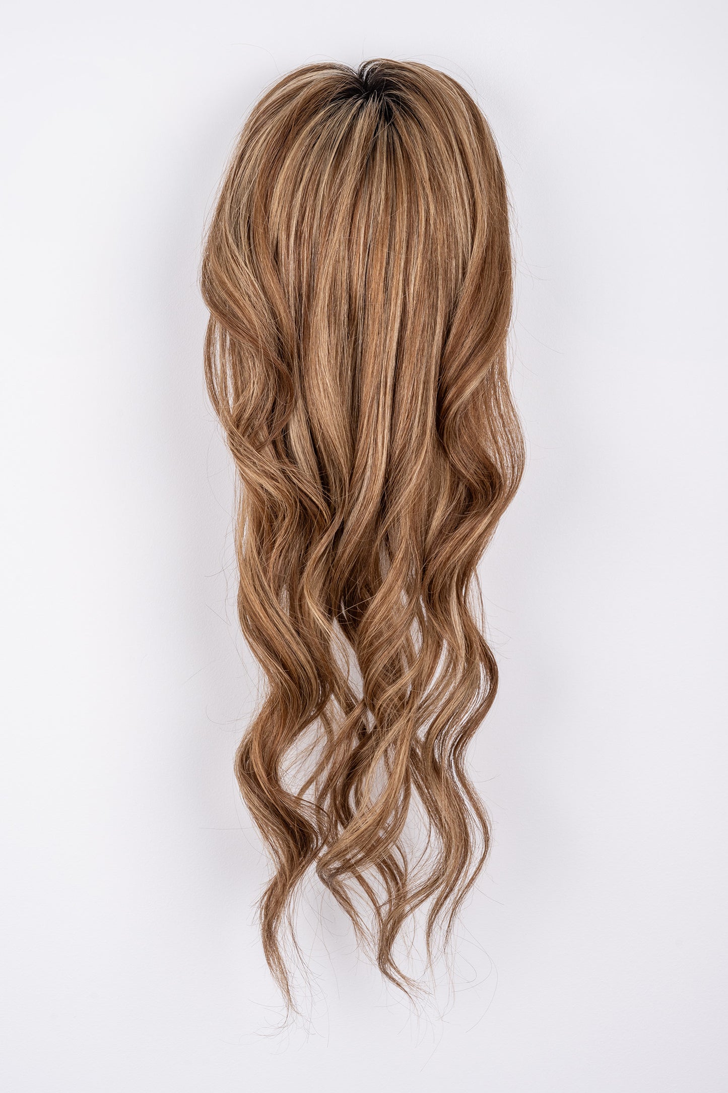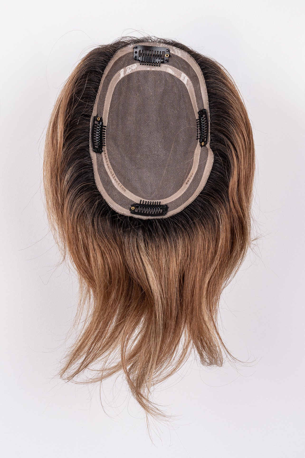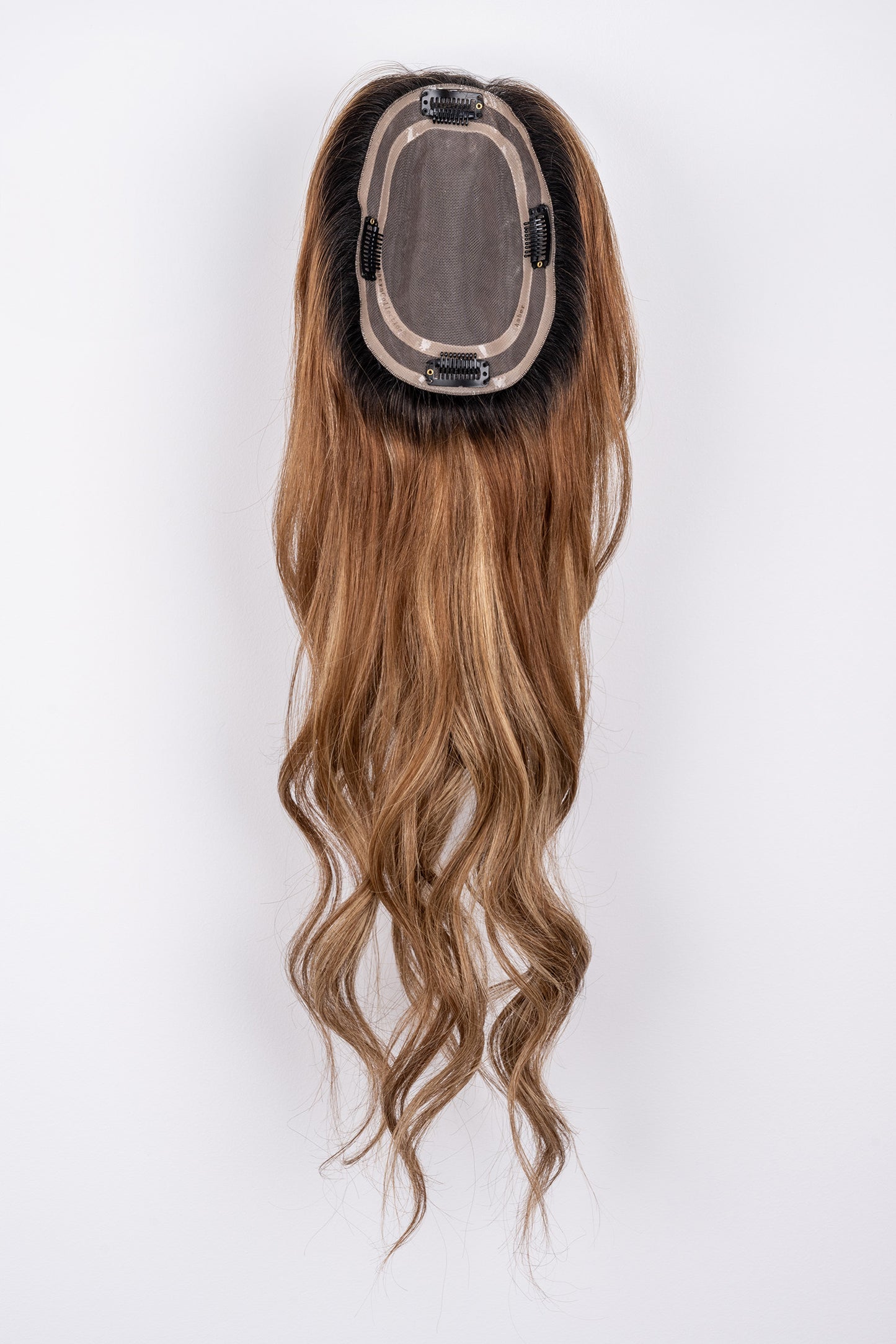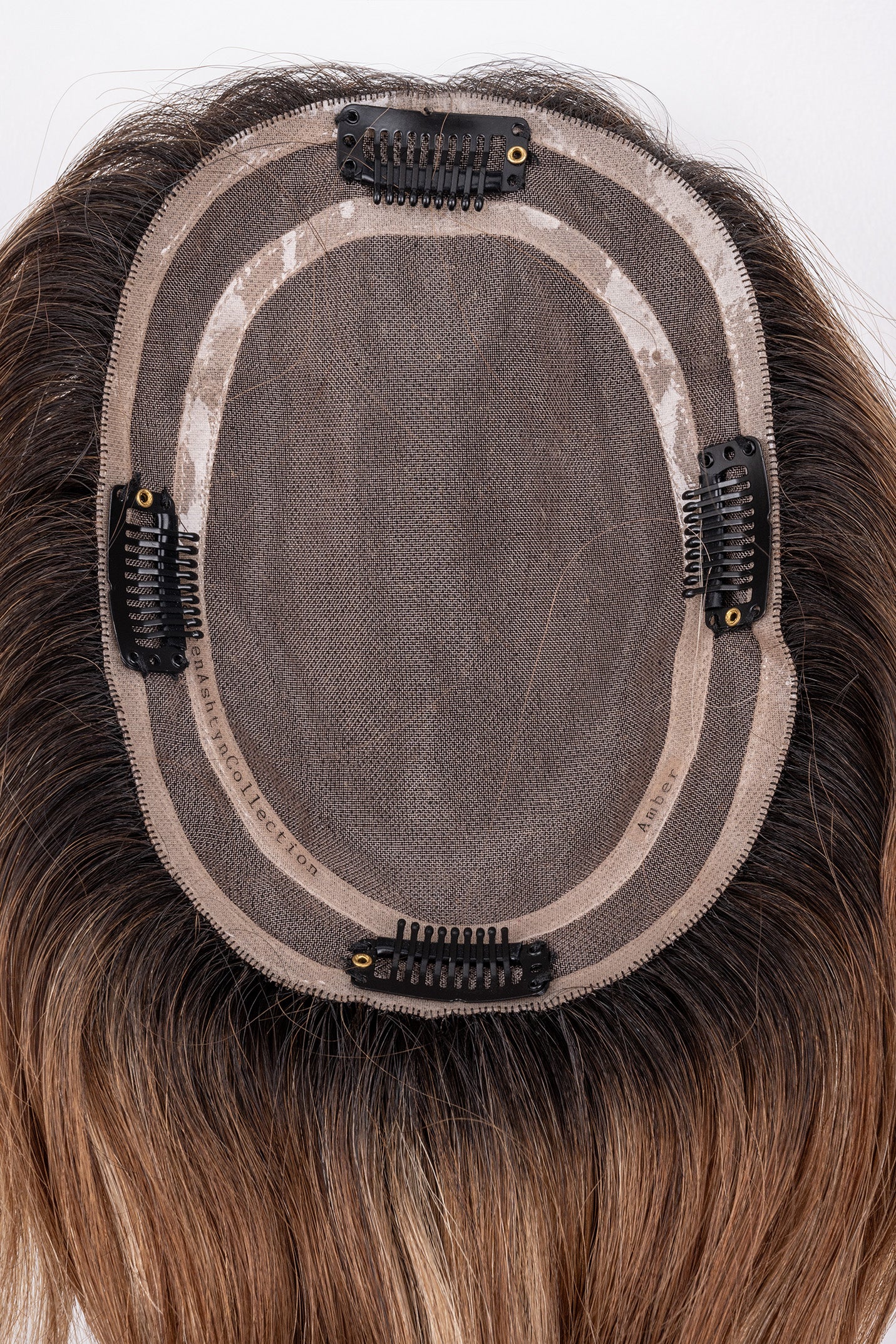 The Amber Full Volume Hair Topper features a dark brown shadow root with golden blonde highlights and warm medium brown lowlights, creating a beautifully balanced, sun-kissed effect. This 100% hand-tied: European human hair topper ensures a scalp-like finish, while the 100% Remy human hair topper provides a lightweight, natural feel. Available in 5-6” and 12-18” lengths, the Amber clip-in hair topper is ideal for those looking to add volume, dimension, and warmth to their hairstyle.