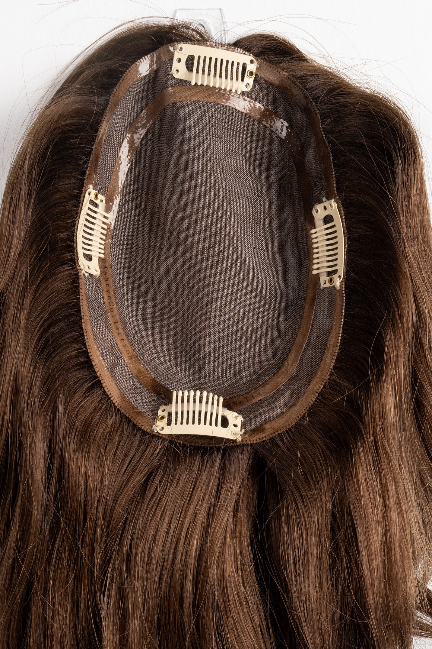 ***THIS IS A FINAL SALE PIECE: THIS CUSTOM COLOR PIECE CANNOT BE RETURNED OR EXCHANGED! Introducing this stunning custom colored topper "Spiced Mocha". This is the only one of its kind, so act fast if you want your hands (or head) on it! The 12-18” full volume extension is the flagship piece in our collection and was first designed by our founder, Lauren Ashtyn, to be her own personal hairpiece. Long, thick, and luxurious, the full volume extension is 18 inches in length with 12” layers. The micro-mesh base is approximately 5”x 6”, which gives this hairpiece twice the density of the 12-16” light volume topper. This hairpiece is worn for maximum volume, length, and fullness. It is sufficiently large enough to cover any thinning spots on the sides and top of the head, as well as the crown and back of the head.