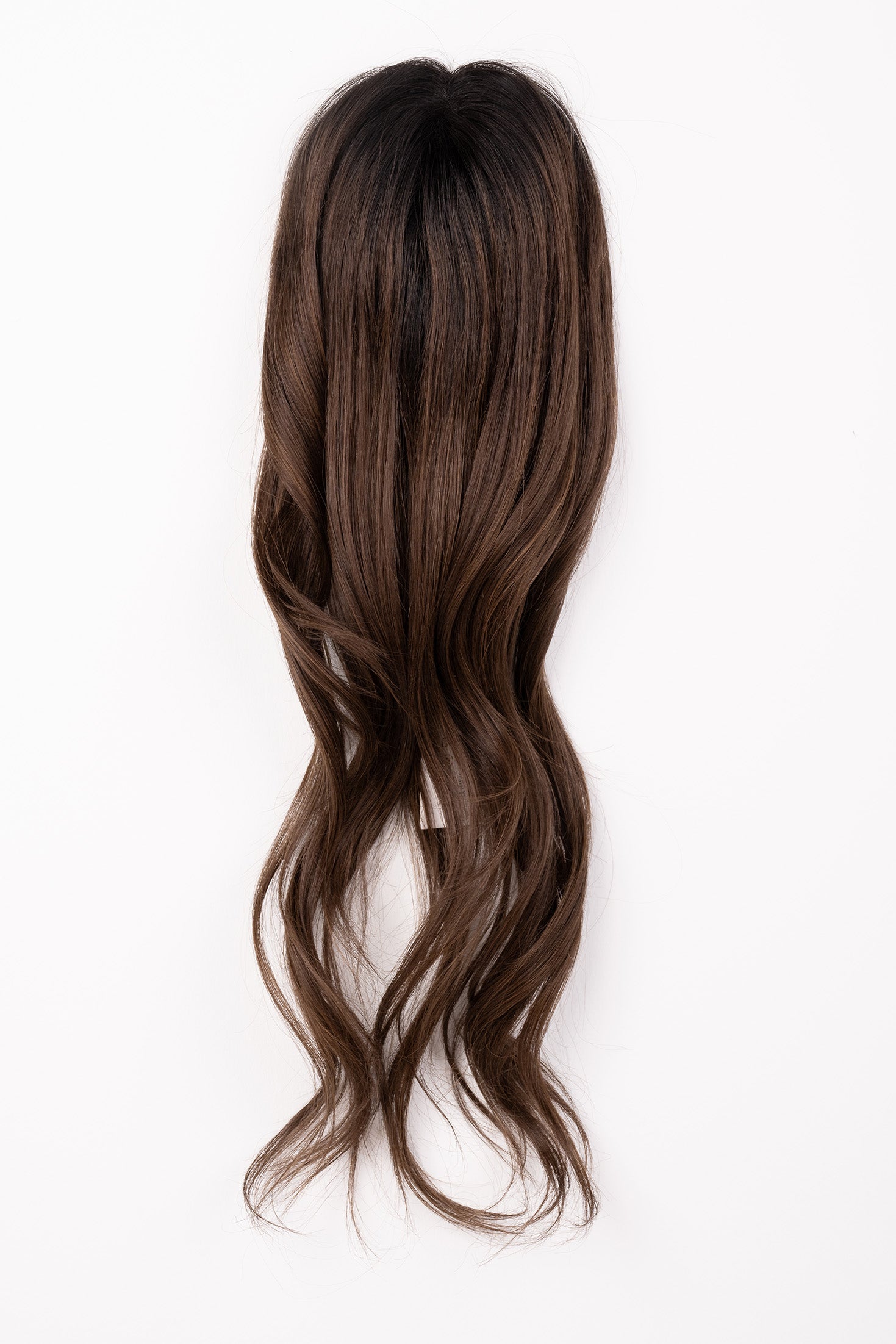 ***THIS IS A FINAL SALE PIECE: THIS CUSTOM COLOR PIECE CANNOT BE RETURNED OR EXCHANGED! Introducing this stunning custom colored topper, "Tawny Allure". This is the only one of its kind, so act fast if you want your hands (or head) on it! The 12-18” full volume extension is the flagship piece in our collection and was first designed by our founder, Lauren Ashtyn, to be her own personal hairpiece. Long, thick, and luxurious, the full volume extension is 18 inches in length with 12” layers. The micro-mesh base is approximately 5”x 6”, which gives this hairpiece twice the density of the 12-16” light volume topper. This hairpiece is worn for maximum volume, length, and fullness. It is sufficiently large enough to cover any thinning spots on the sides and top of the head, as well as the crown and back of the head.